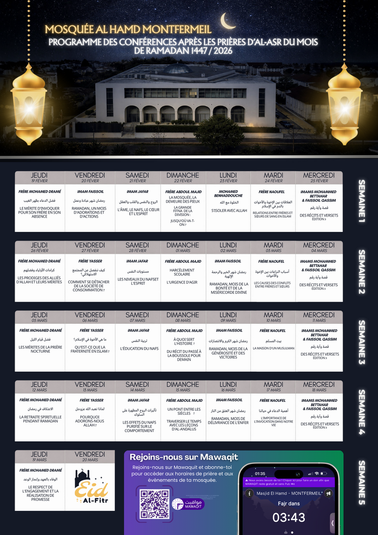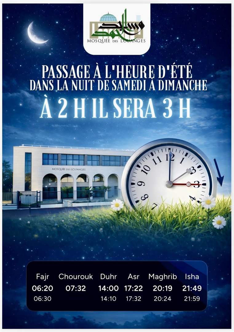 *Pendant le Ramadan 1h10 avant pour prier le Tahajjud)