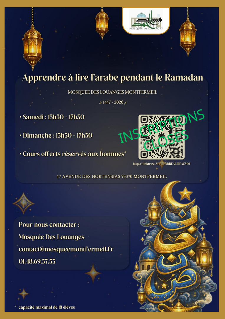– Pour la prière de Jumua ouverture des portes 1h avant (à 12h)